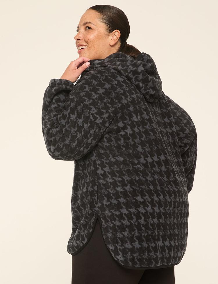 Available in Plus Size Ready, set, cozy. Designed in super-plush & pillowy fleece, this full-zip jacket is easy to layer on and go for walks, jogs and errands. FIT: Classic. Designed for curves and a not-too-tight, not-too-loose, just-right fit. Front Length: 32" Back Length: 33" Longer length is perfect for added coverage FABRIC: Plush, pillowy fleece fabric Machine Wash 100% Polyester FEATURES: Classic hood Long sleeves with covered elastic cuffs Two side pockets High-low hem Zip front WHY OUR ACTIVEWEAR IS THE BEST FOR CURVES: Feel-good fabrics, from sweat-wicking to 4-way stretchy, made forcomfort & style. A variety of coverage options to have you covered for every moveyou make. Designed to live in, ultimate life-styling versatility for everywhereyou go. Item Number #409527 Imported Plus Size Top ". Plus Size LIVI Fleece Full-Zip Hooded Jacket, in Charcoal Houndstooth, 14/16, Women's, Lane Bryant