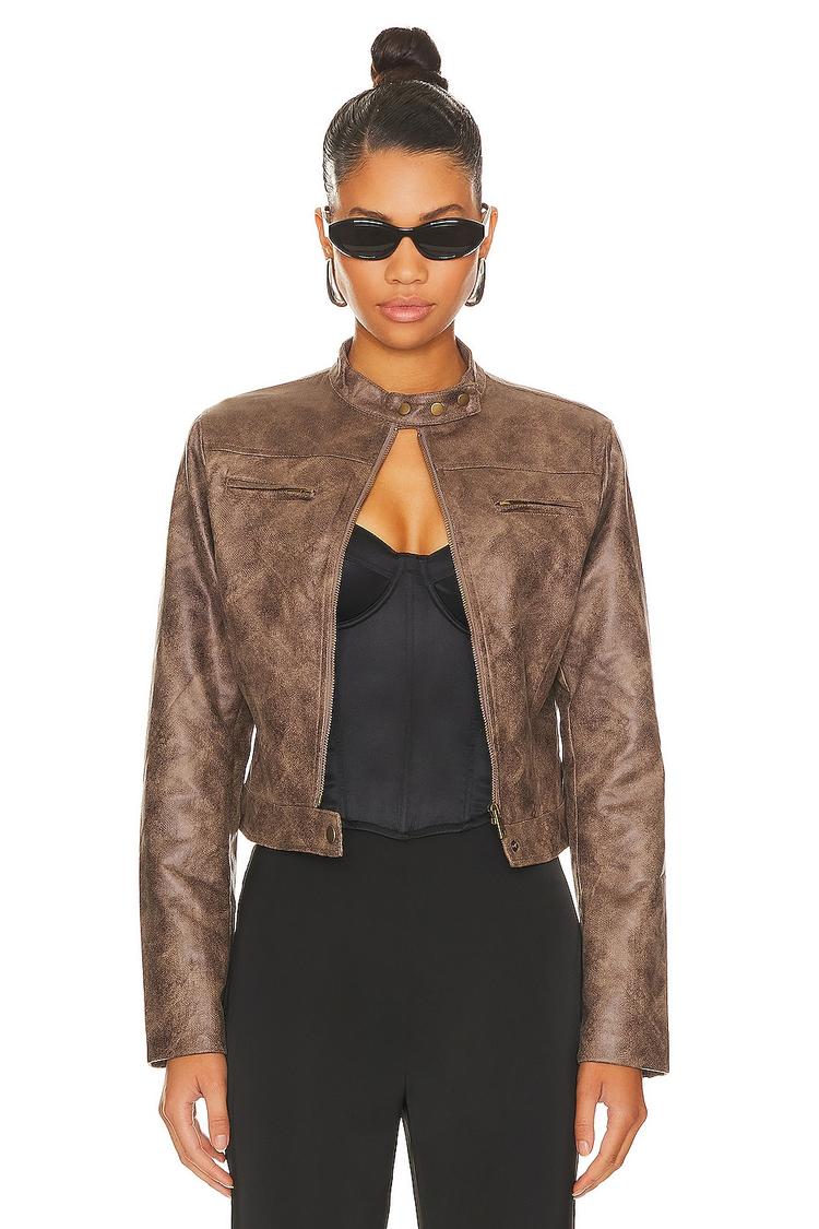 brown biker jacket for streetwear