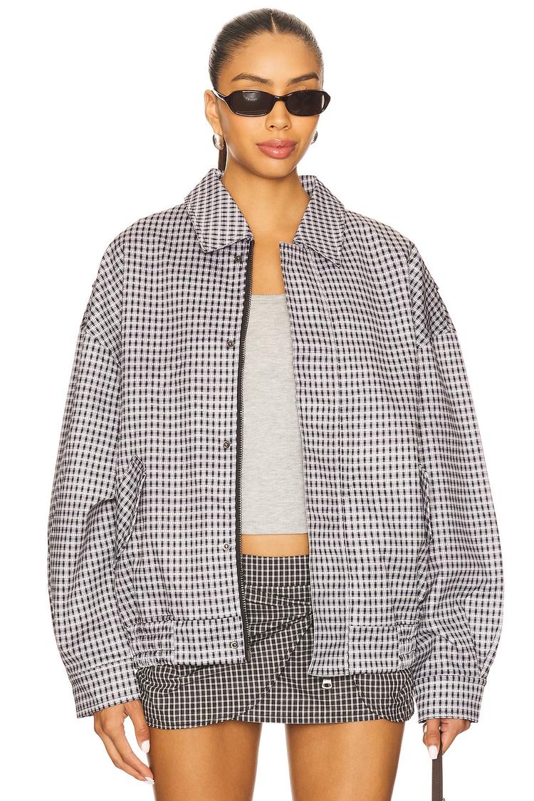 checkered polyester bomber