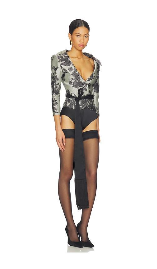 MARKGONG POLKA DOT CROPPED JACKET IN BLACK,WHITE.