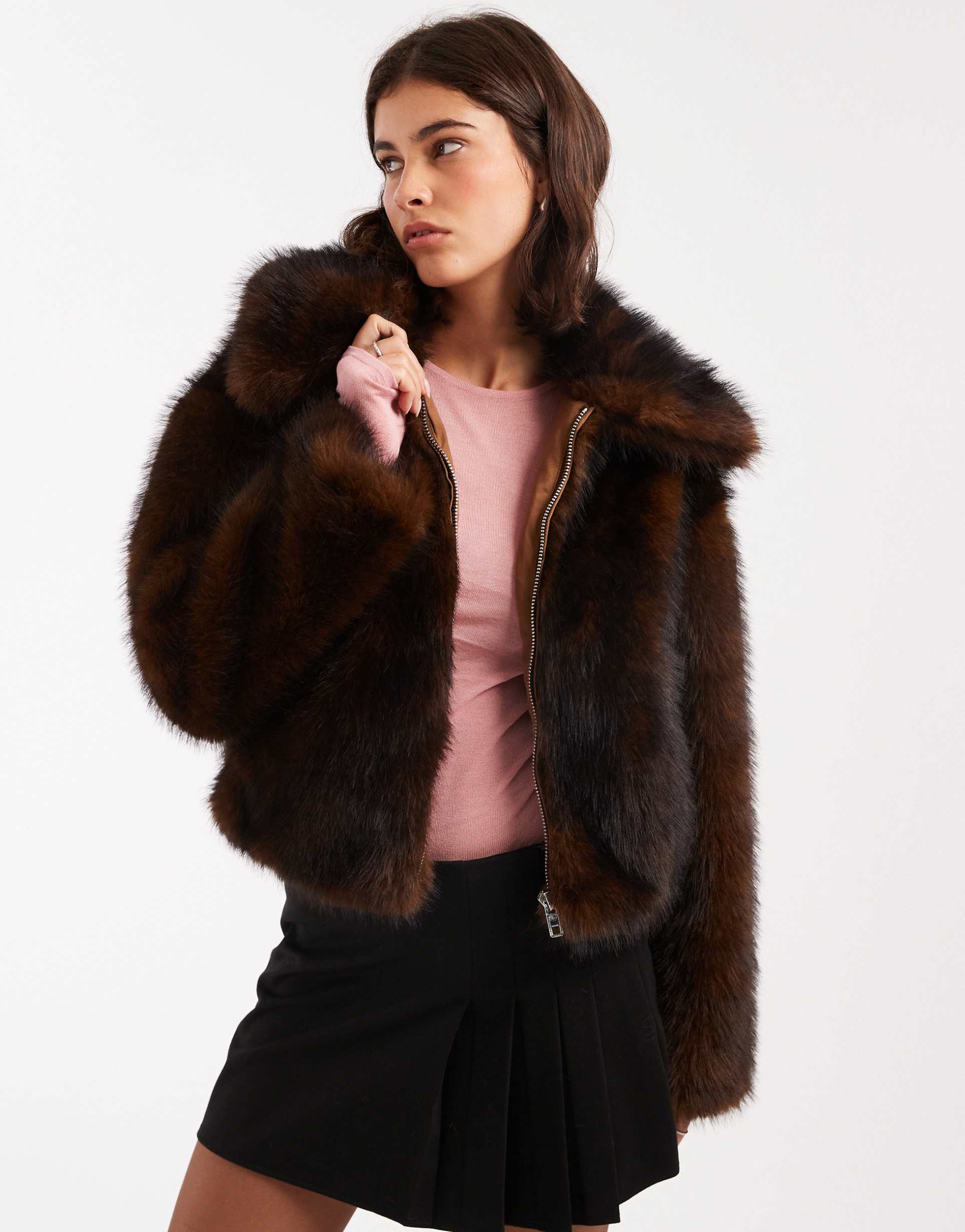 faux fur bomber jacket for winter layering