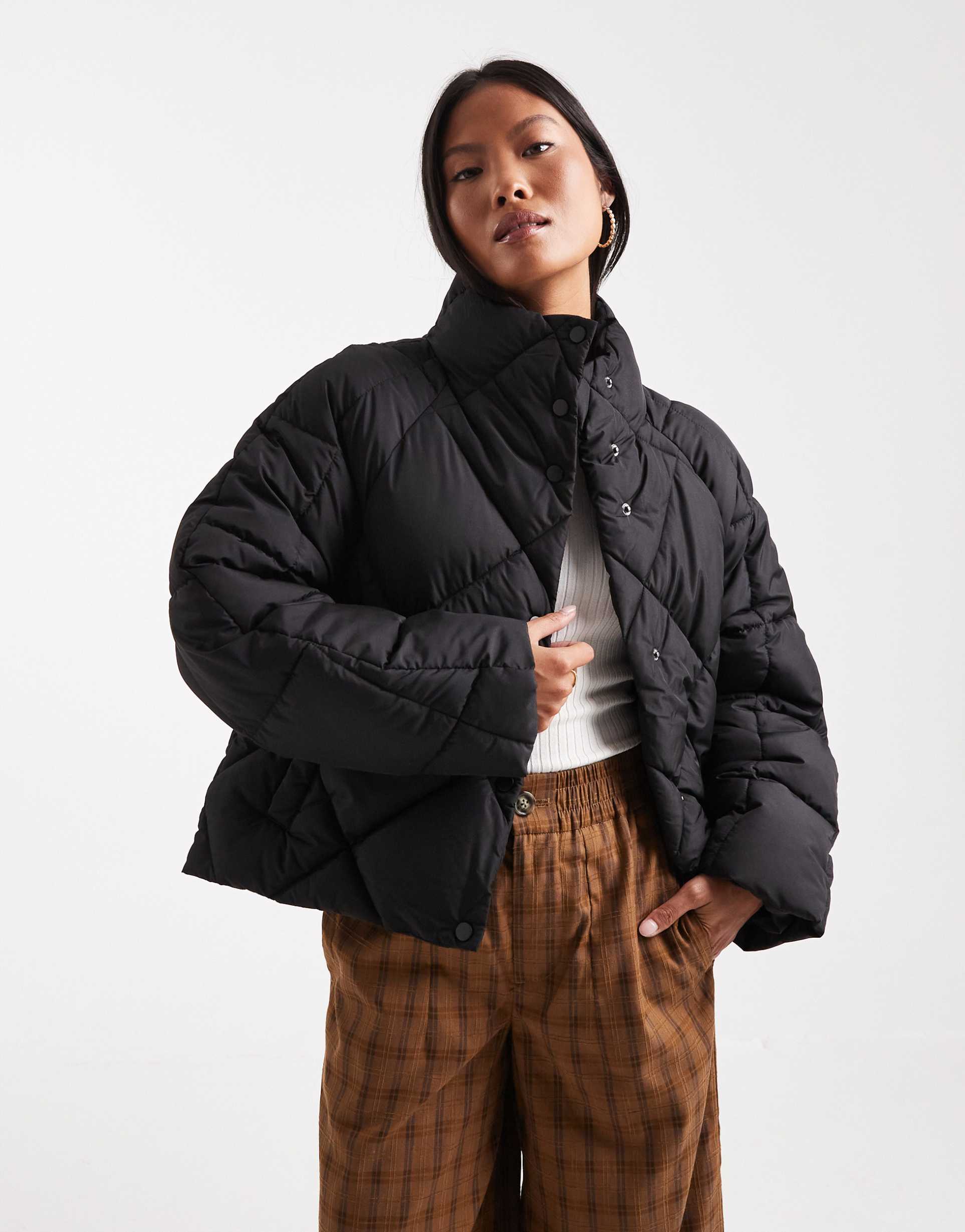 MISS SELFRIDGE PETITE OVERSIZED QUILTED FUNNEL NECK CROPPED PUFFER JACKET IN BLACK