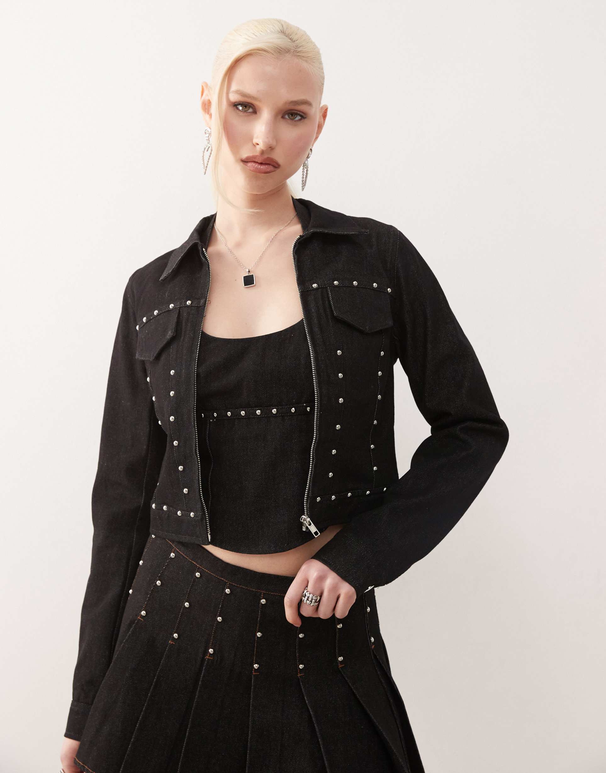 MOTEL RONIRA STUD DETAIL FITTED DENIM JACKET IN WASHED BLACK