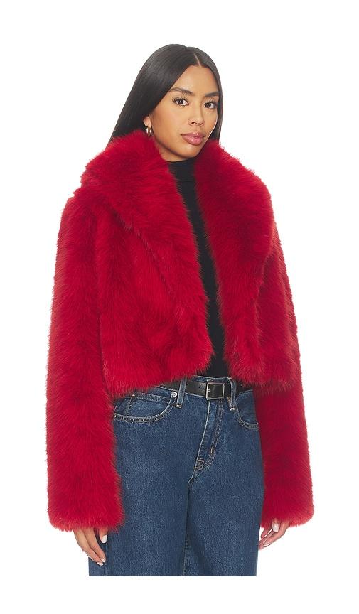 NAKEDVICE THE DELANEY CROPPED FUR JACKET IN RED.