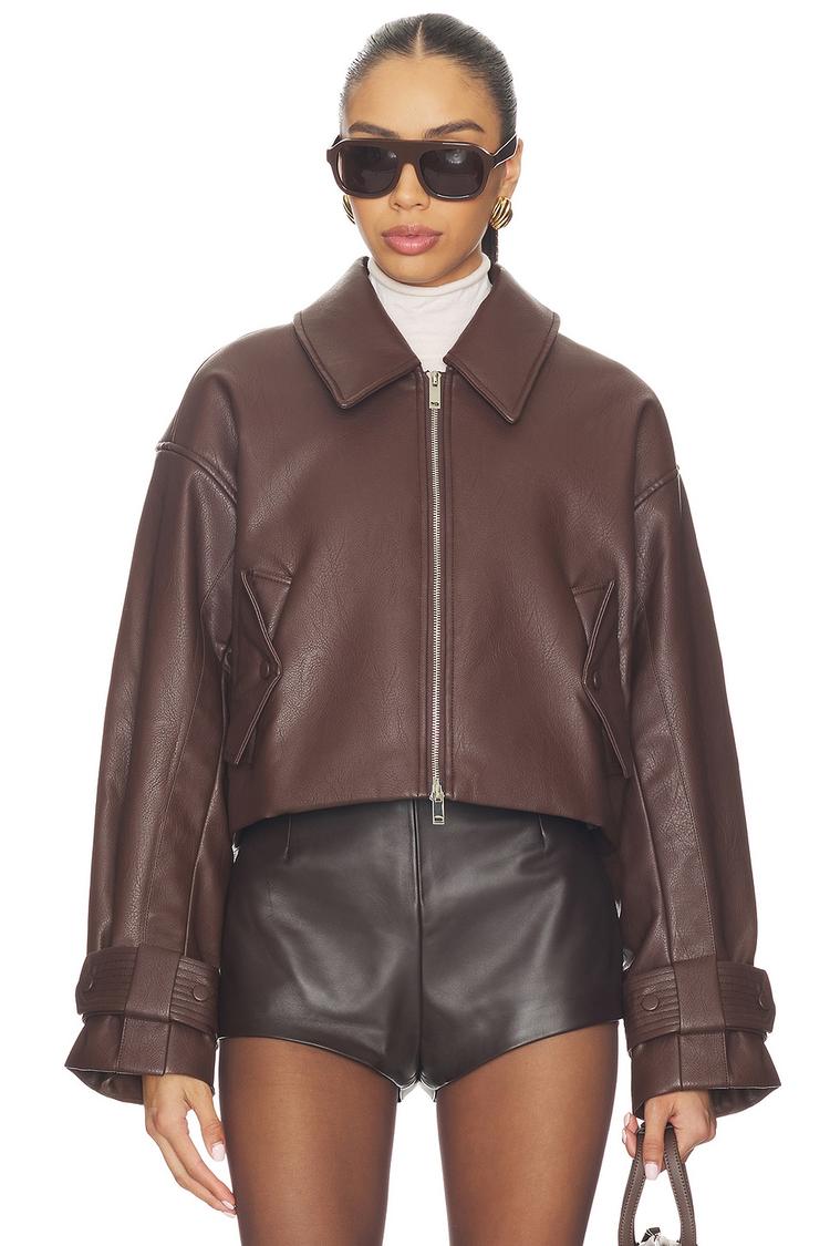 This cropped biker-moto jacket features a matte dark brown finish crafted from a viscose and polyurethane blend, lined with smooth polyester for comfort. Its boxy fit and turn-down collar offer a modern silhouette, while long regular sleeves end in adjustable cuff straps with snap buttons. The front zipper closure and flap pockets with snap buttons enhance functionality and edgy style. Perfect for casual outings, streetwear looks, and travel, this jacket blends bold design details like exposed zippers and buckles with practical features for transitional seasons like autumn, winter, and spring.