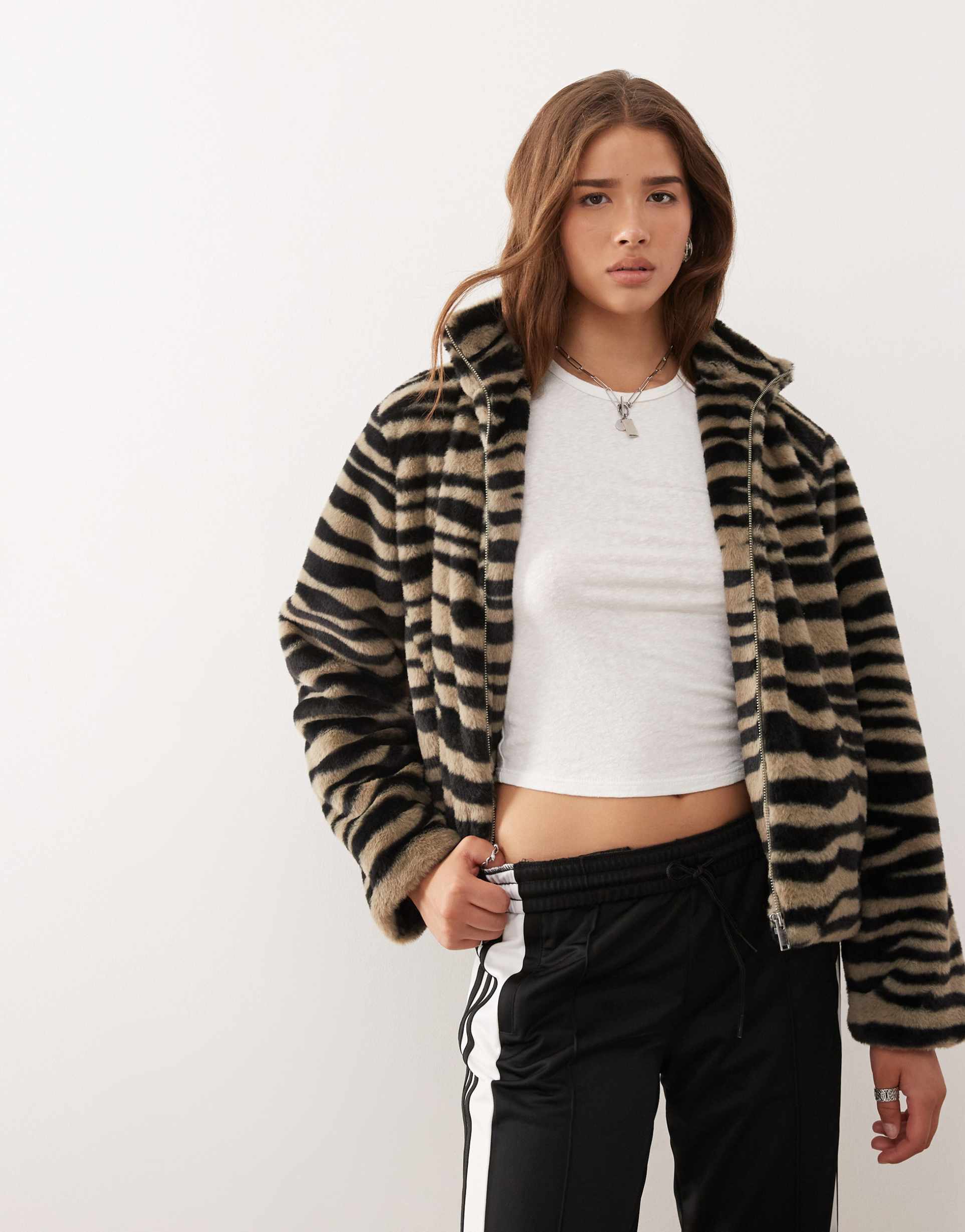 animal print faux fur jacket