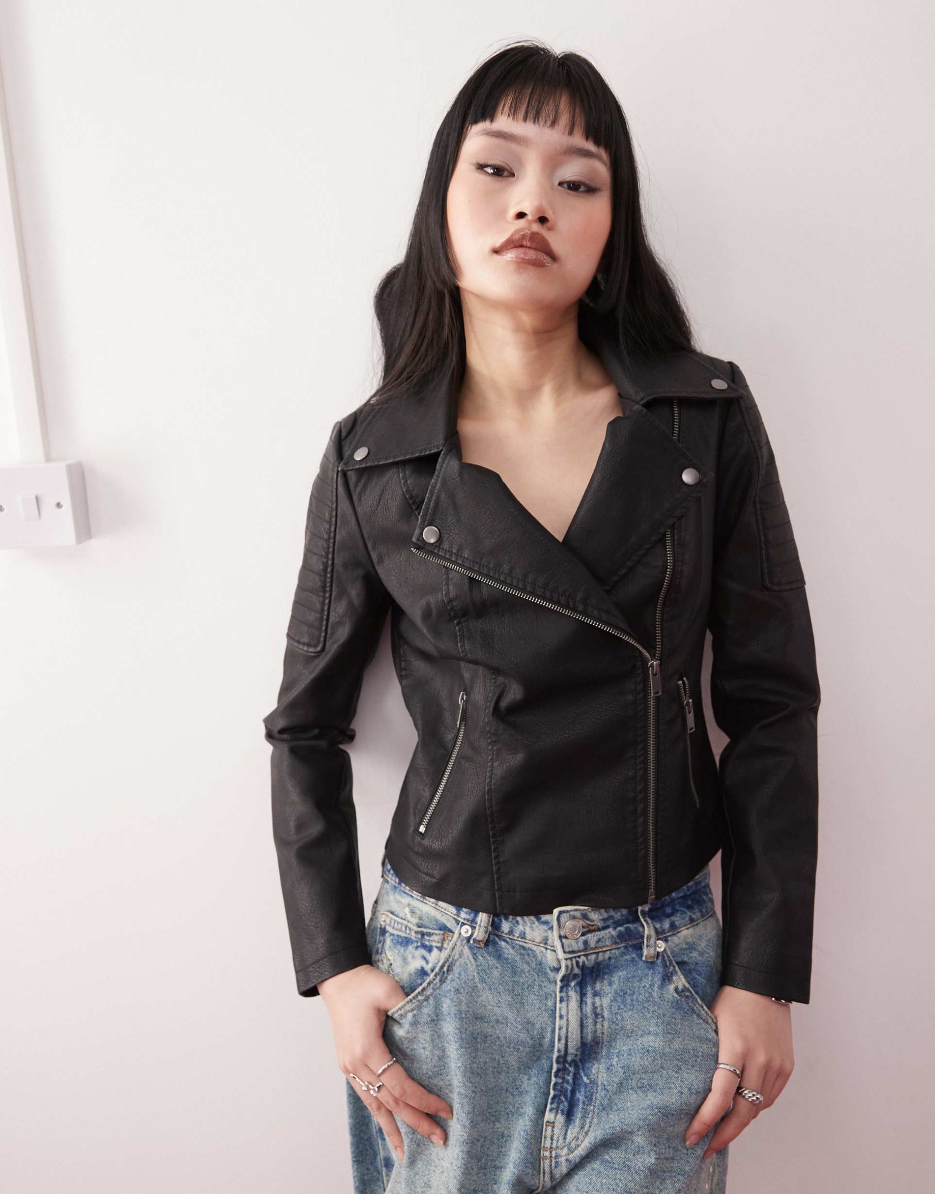 NOISY MAY LEATHER LOOK JACKET IN BLACK