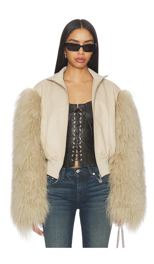 OW COLLECTION BEX FUR JACKET IN TAN.