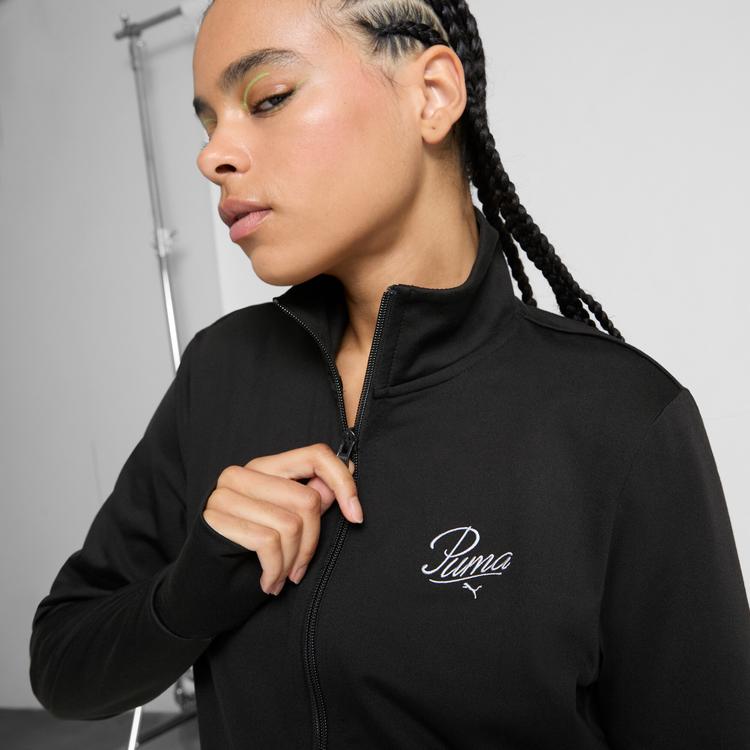 PUMA ESS SCRIPT WOMEN'S FULL-ZIP JACKET IN BLACK, SIZE XL
