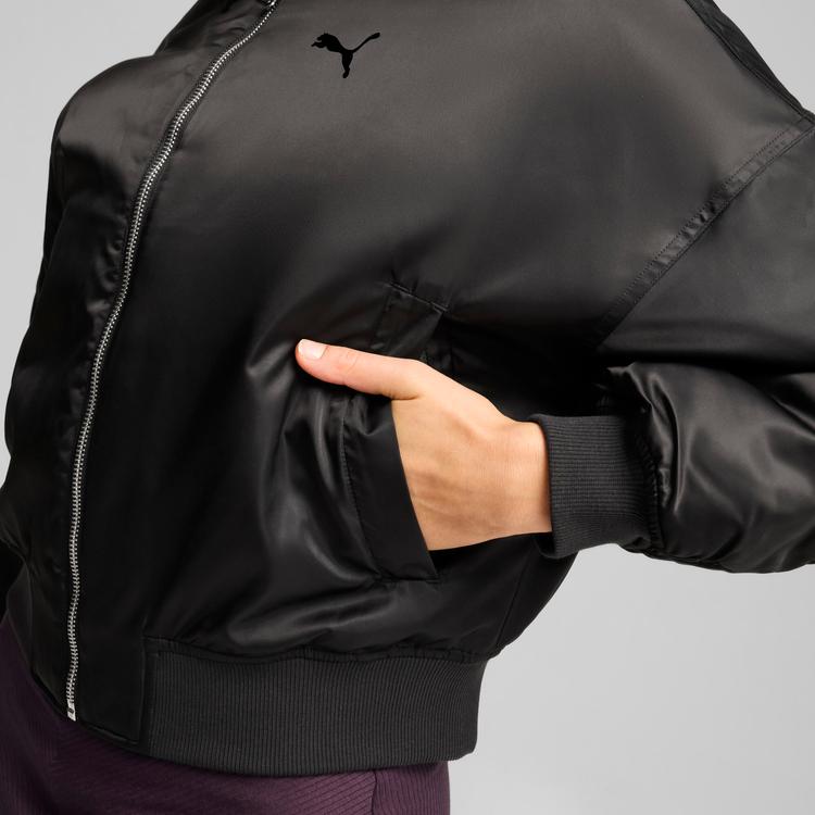 PUMA WOMEN'S SATIN BOMBER JACKET IN BLACK, SIZE M