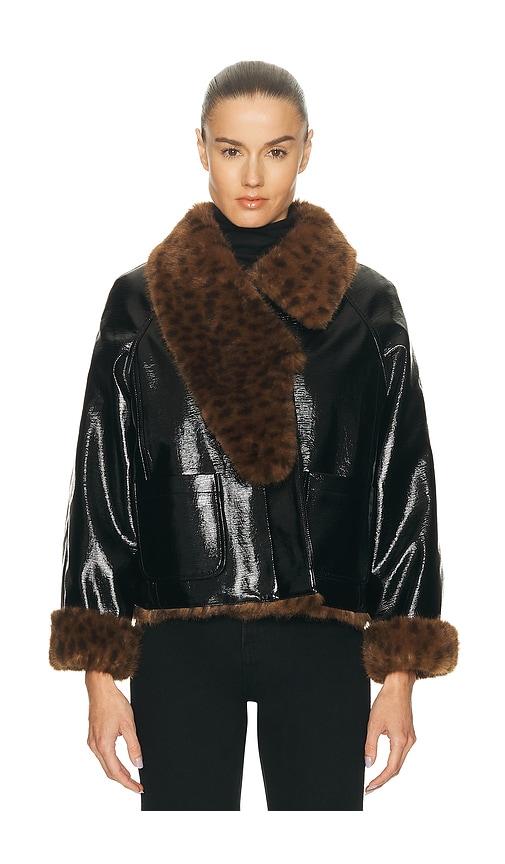 REVOLVE X JJ REVOLVE X JJ PU LEOPARD PRINT JACKET IN BLACK.