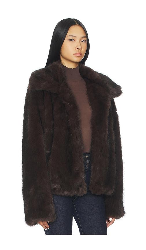 SNDYS LEILA FAUX FUR JACKET IN CHOCOLATE.