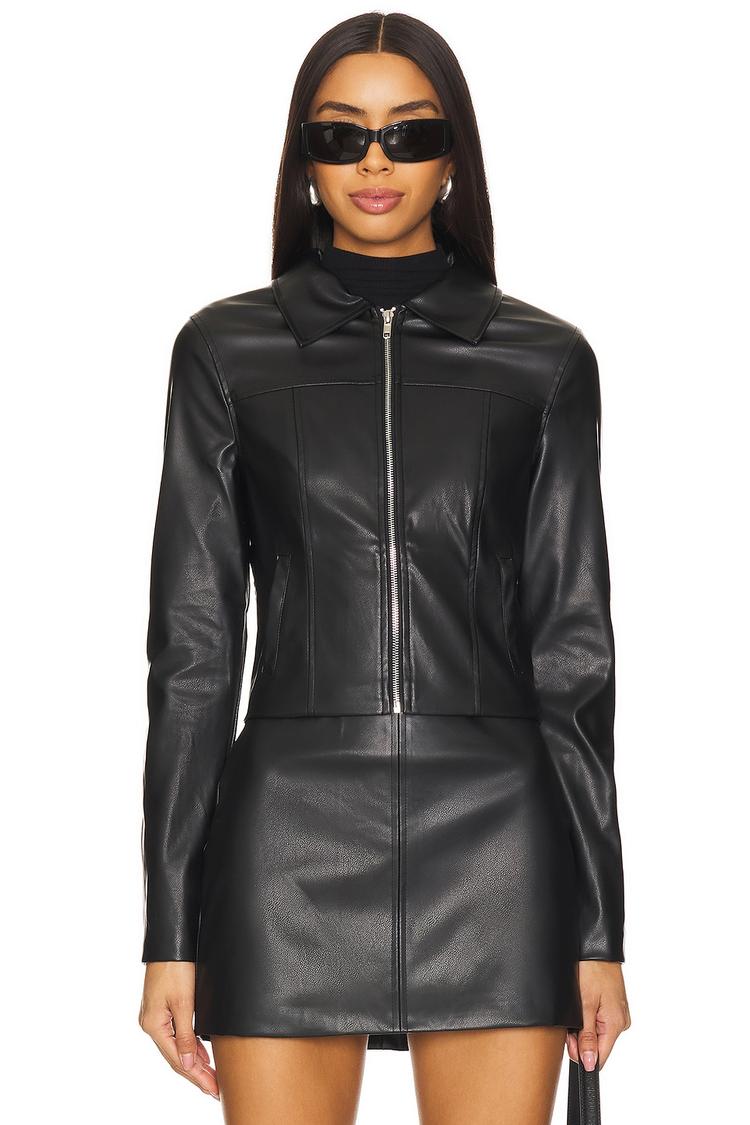 This fitted faux leather biker-moto jacket features a sleek waist-length silhouette with a classic turn-down collar and long regular sleeves. Crafted from lightweight matte black faux leather, it includes an exposed front zipper closure and two functional front pockets. The silver zipper details add edgy, modern appeal to this chic piece. Ideal for casual outings, streetwear looks, and night outs during autumn, winter, and spring seasons, this jacket offers a stylish, versatile option to elevate your wardrobe with confident, minimalist style.