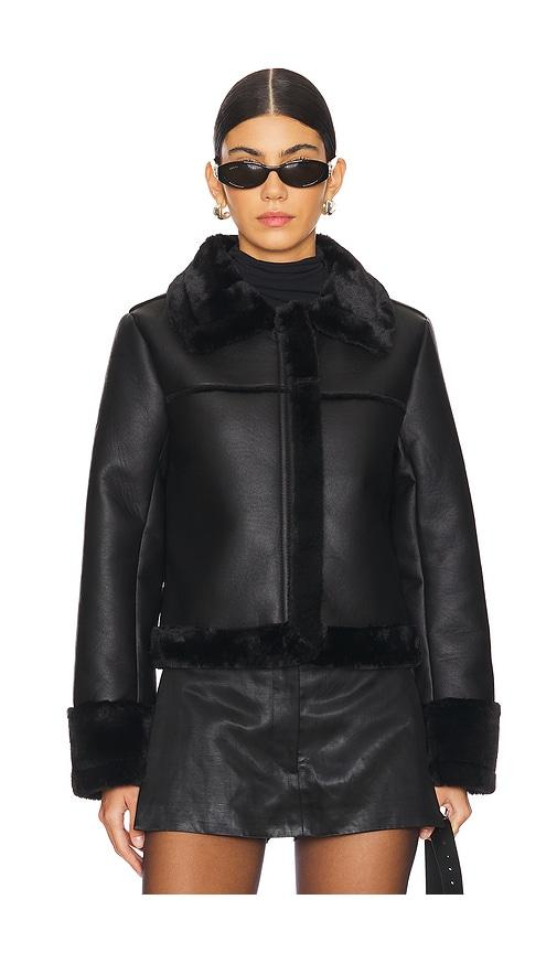 SUPERDOWN SASHA FAUX LEATHER JACKET IN BLACK.