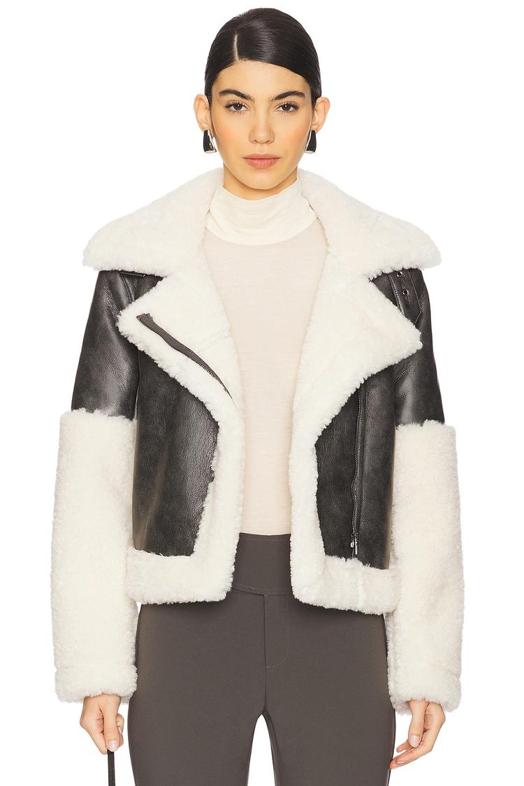 This modern blouson jacket features a matte black coated faux leather body accented with plush white faux fur trim along the collar, cuffs, and hem. The waist-length silhouette offers a regular fit with long sleeves and classic lapel collar, exuding casual chic style. Functional front zipper closure and zippered pockets add utility, while the cozy sherpa faux fur lining ensures warmth for autumn and winter seasons. Ideal for casual outings, streetwear looks, and travel, this jacket blends edgy texture with soft comfort effortlessly.