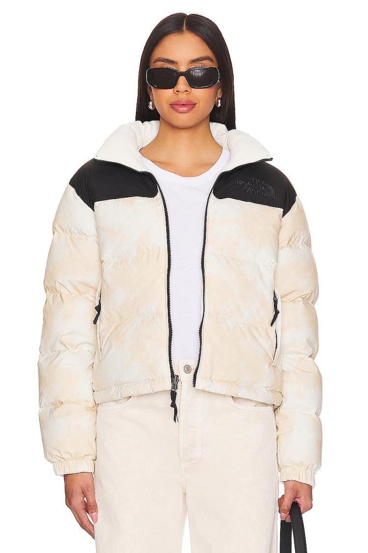 This The North Face Crinkle Rev Nuptse Jacket is a waist-length, regular fit puffer crafted from midweight padded ripstop nylon filled with recycled down for insulation. It features a stand collar, long regular sleeves, and exposed zipper details on the front and slant pockets. The jacket is quilted and reversible, offering versatile styling options in off-white with black accents on the shoulders and zippers. Ideal for autumn and winter casual wear, travel, and streetwear, it combines functional warmth with sporty chic aesthetics, ensuring both style and comfort.