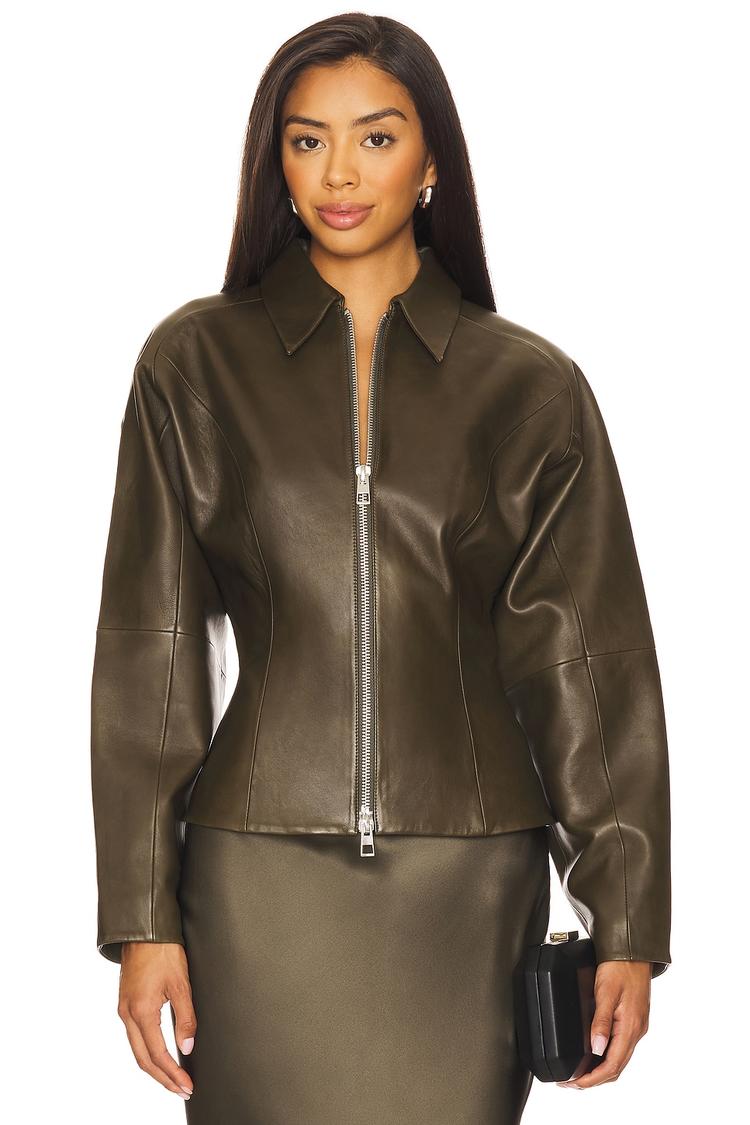 dark olive leather outerwear