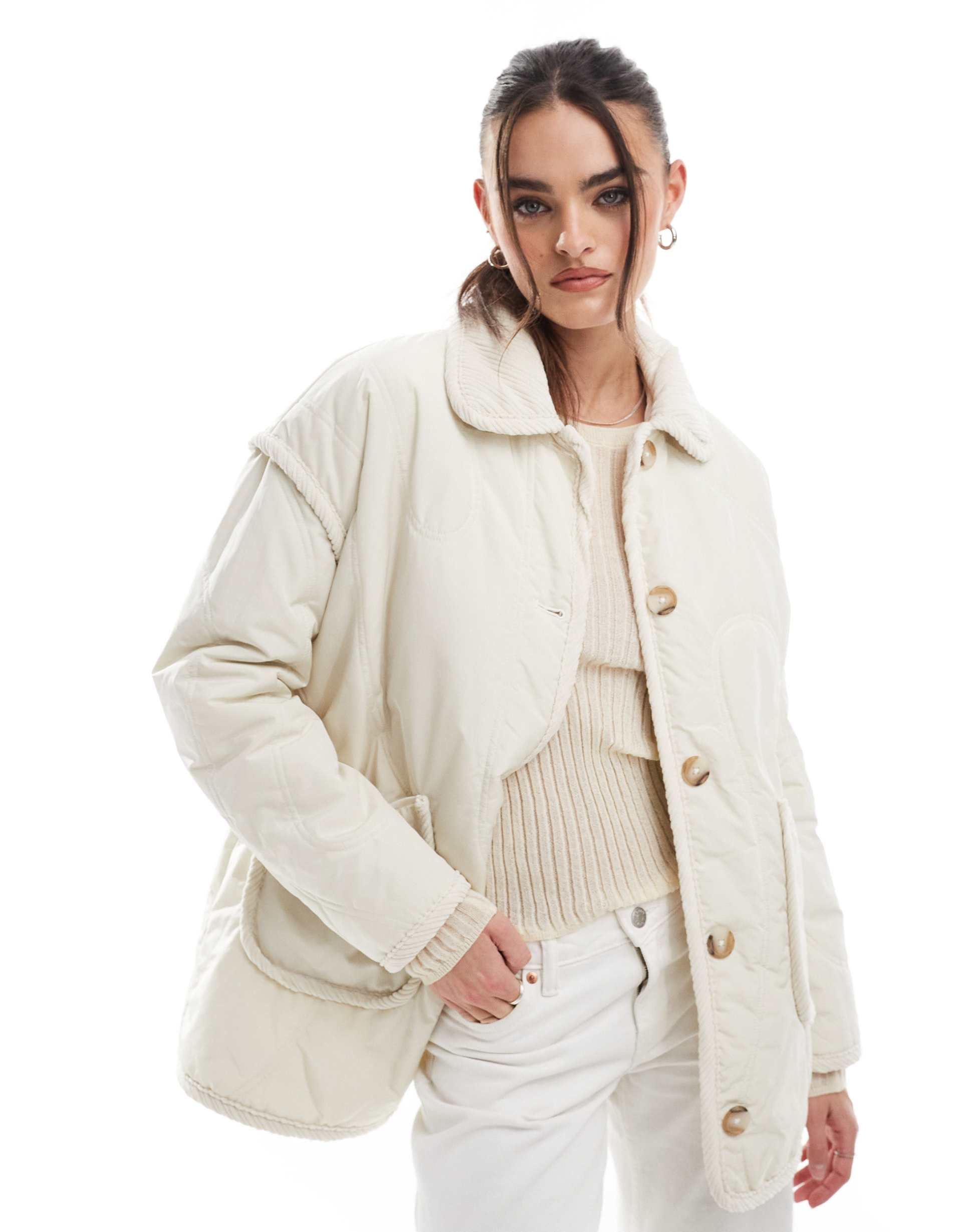 THREADBARE QUILTED JACKET WITH CORD DETAIL IN CREAM