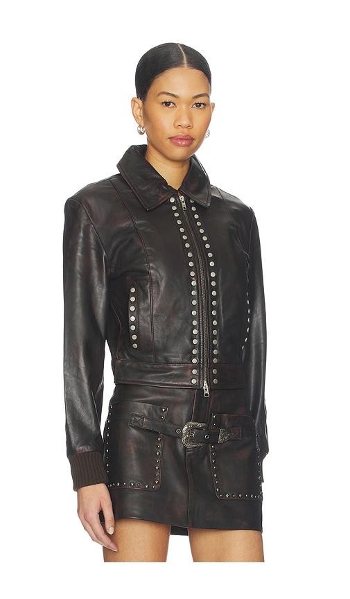 UNDERSTATED LEATHER STUDDED JACKET IN CHOCOLATE.