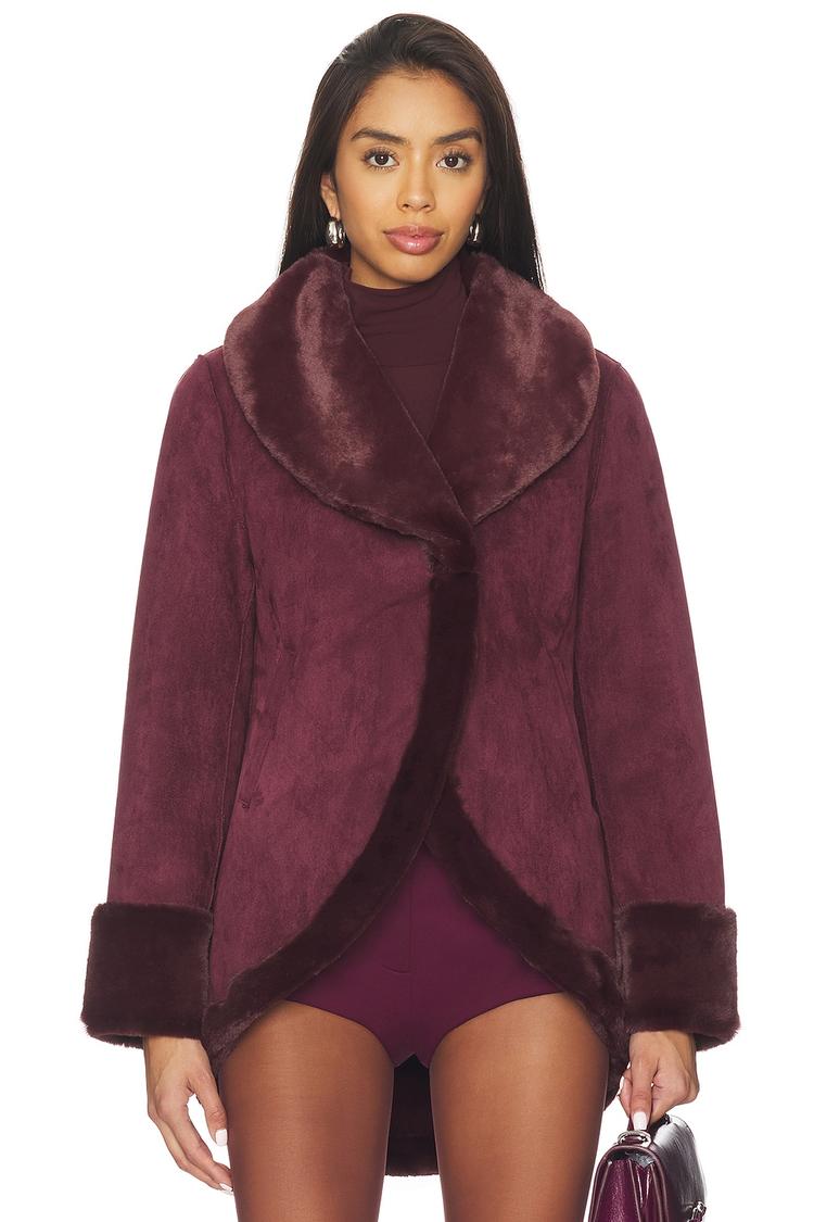 burgundy faux fur trim coat