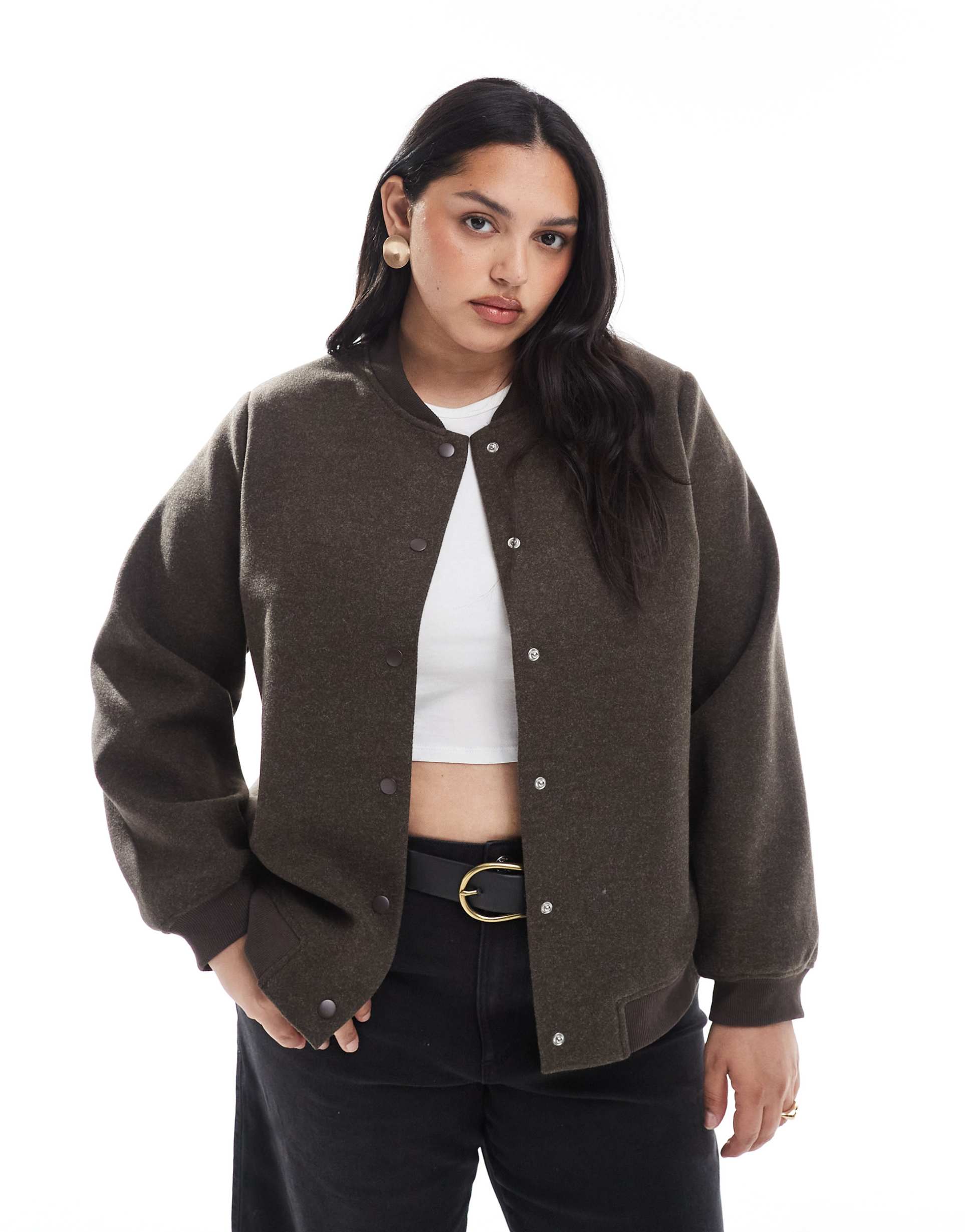 VERO MODA CURVE BOMBER JACKET IN CHOCOLATE BROWN