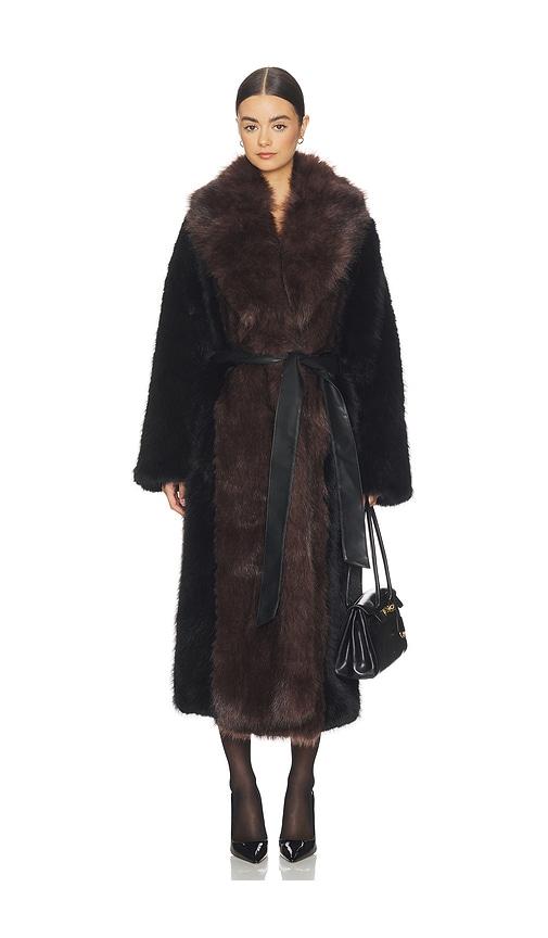 WEWOREWHAT FAUX FUR BELTED JACKET IN BLACK,CHOCOLATE.
