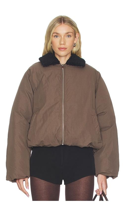 WEWOREWHAT FAUX FUR COLLAR BALLOON JACKET IN BROWN.