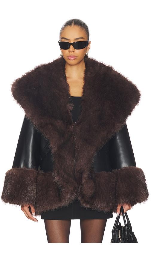 WEWOREWHAT X REVOLVE COCOON FAUX FUR JACKET IN BLACK,BROWN.