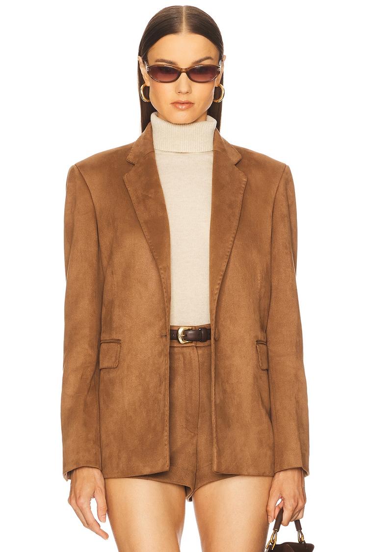 This single-breasted Denny jacket features a classic notch lapel and regular long sleeves, crafted from midweight matte brown microfiber fabric. The hip-length silhouette offers a regular fit with clean front patch details adding subtle sophistication. The button closure completes its timeless design, making it perfect for casual outings, business casual environments, and workwear during autumn, winter, and spring seasons. Its minimalist and elegant style pairs effortlessly with tailored separates for a polished look.