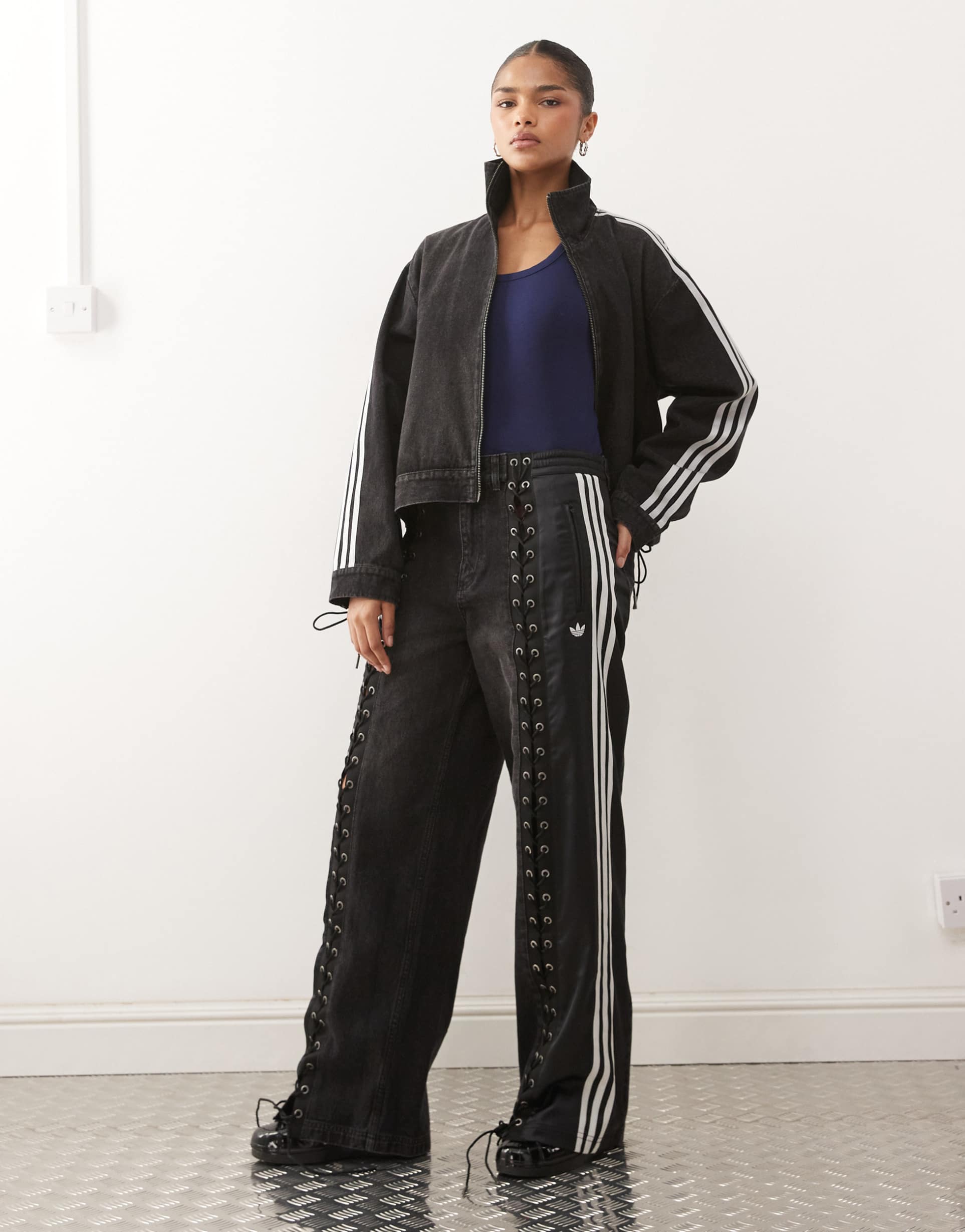 ADIDAS ORIGINALS FIREBIRD DENIM TRACK PANTS IN BLACK
