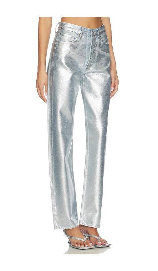AGOLDE 90'S MID RISE LOOSE FIT JEANS IN METALLIC SILVER.
