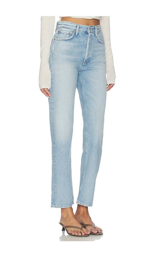 AGOLDE 90'S PINCH WAIST HIGH RISE STRAIGHT JEANS IN BLUE.