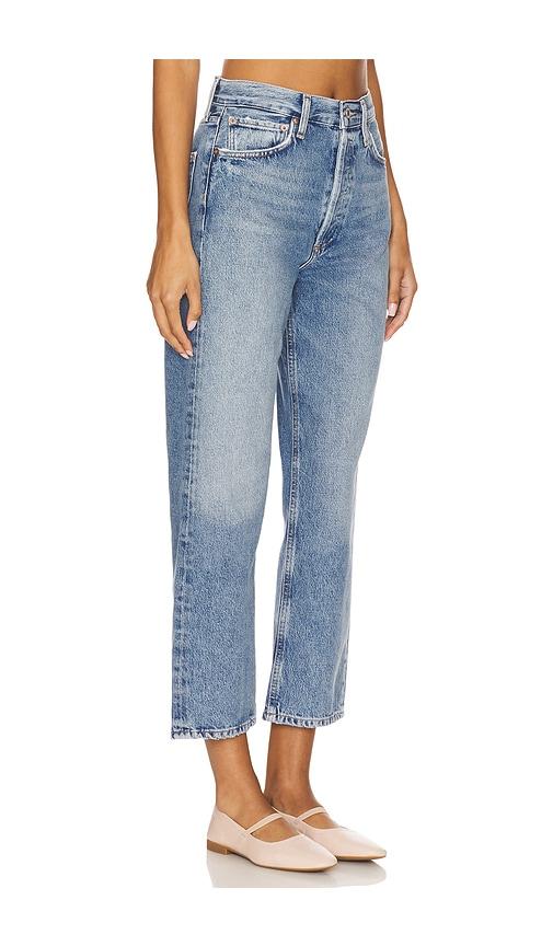 AGOLDE 90S MID RISE LOOSE STRAIGHT CROP JEANS IN BLUE.
