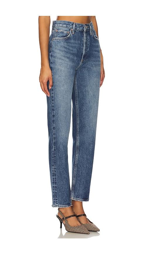 AGOLDE 90S PINCH WAIST HIGH RISE STRAIGHT JEANS IN BLUE.