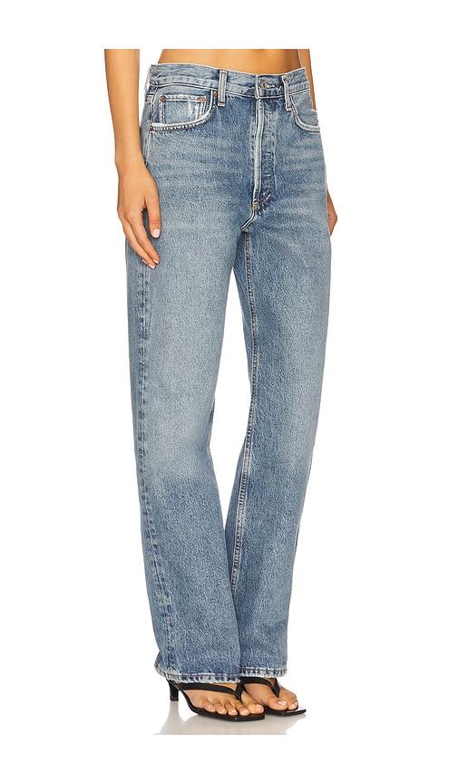AGOLDE FRAN LOW SLUNG EASY STRAIGHT JEANS IN BLUE.