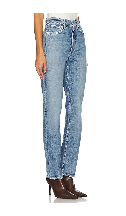 AGOLDE HIGH RISE STOVEPIPE JEANS IN BLUE.