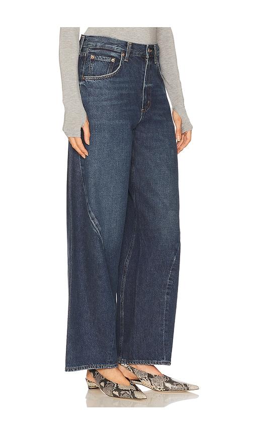 AGOLDE TWIST WIDE LEG JEANS IN BLUE.