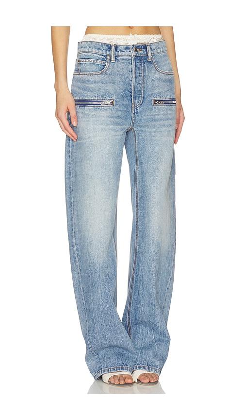 ALEXANDER WANG SILK PRESTYLE FLOAT JEANS WITH HORIZONTAL ZIPS IN BLUE.