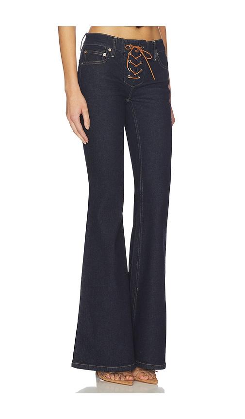 ALICE + OLIVIA DELILAH FLARE JEAN IN BLUE.