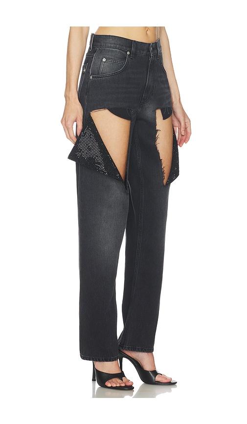 AREA HOTFIX THIGH SLASH JEAN IN BLACK.