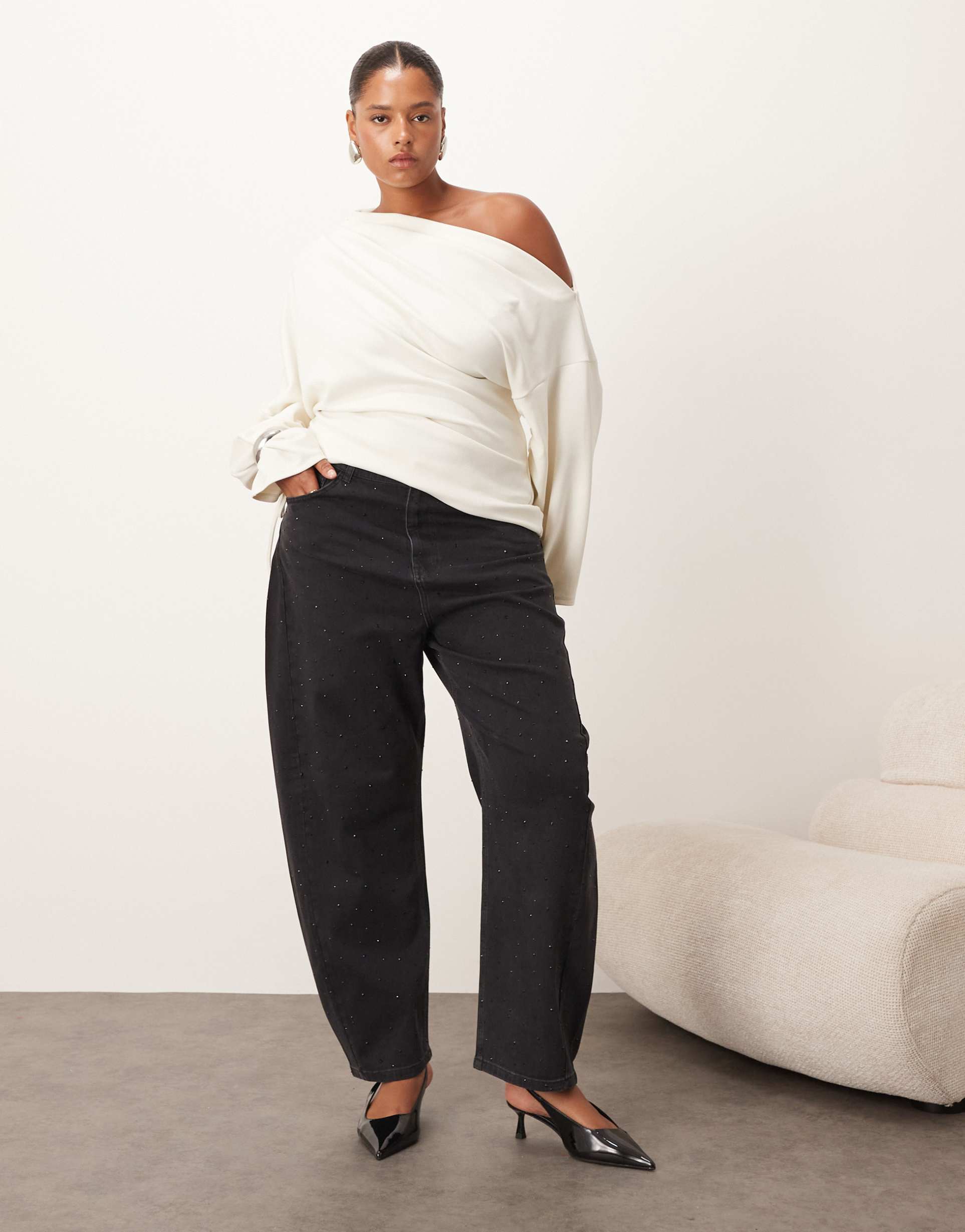 ARRANGE CURVE EDEN BARREL LEG HIGH WAIST HOTFIX JEANS IN BLACK