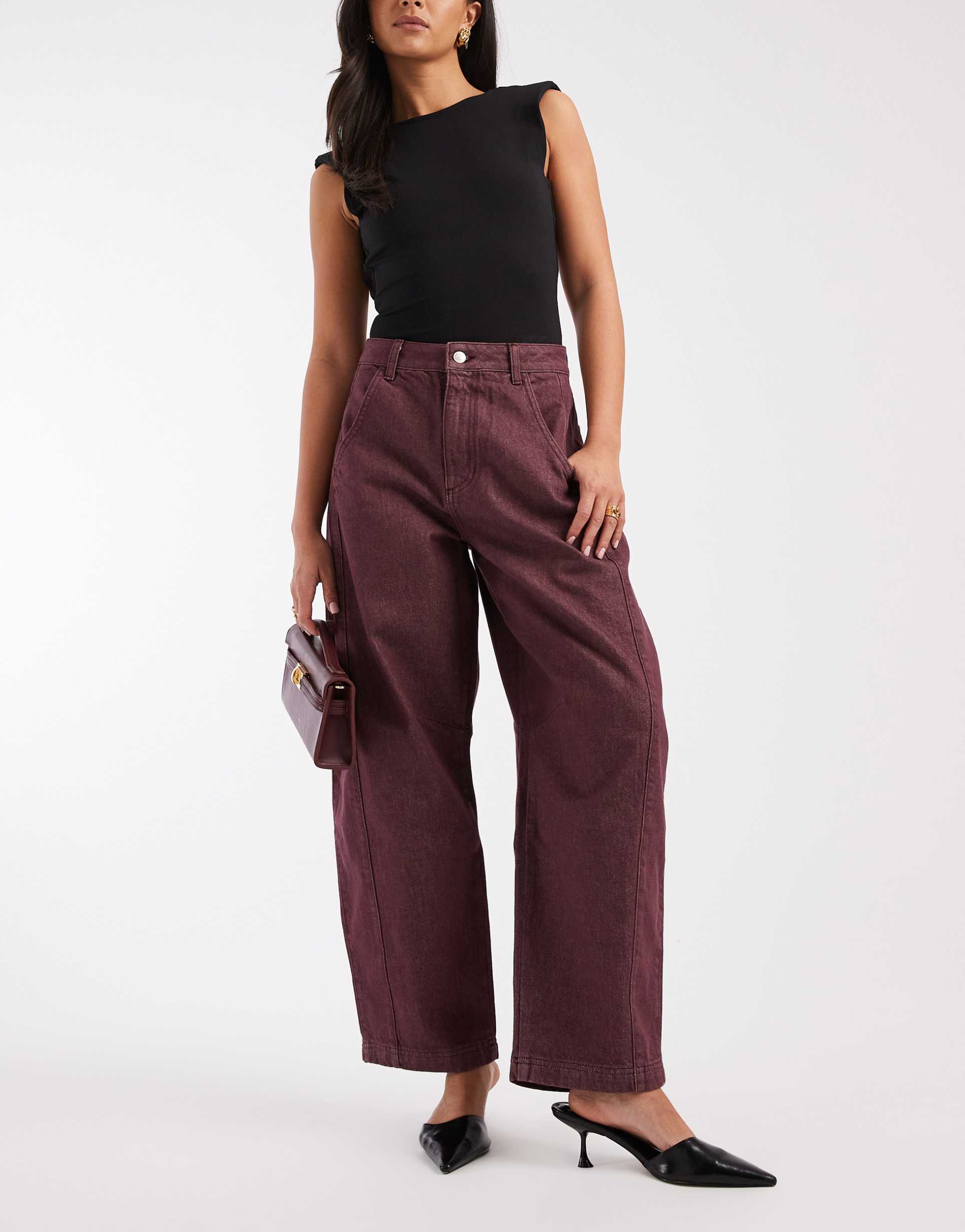 ASOS DESIGN CROPPED BARREL LEG JEANS IN PLUM