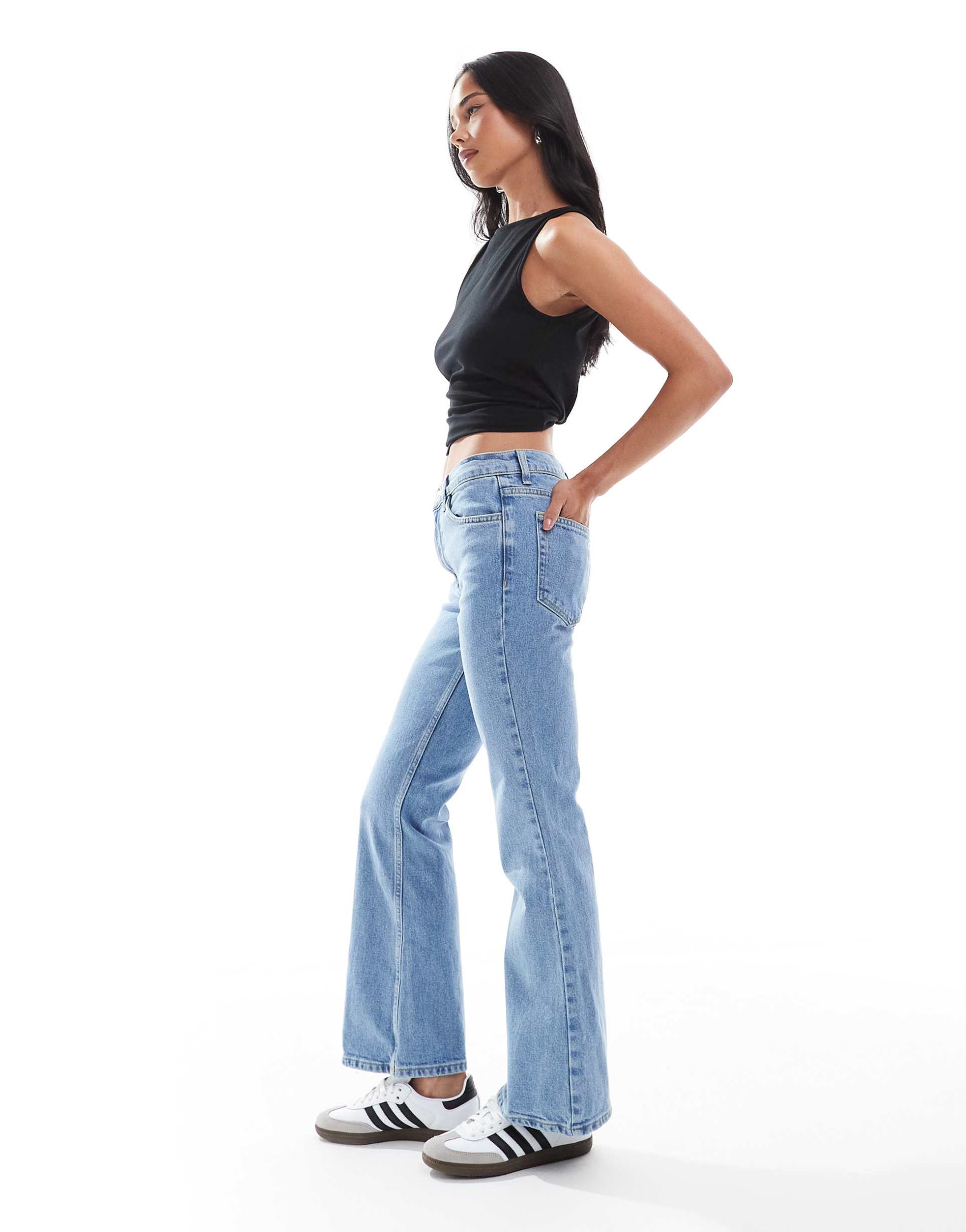 ASOS DESIGN CROPPED KICK FLARE JEAN IN MID BLUE