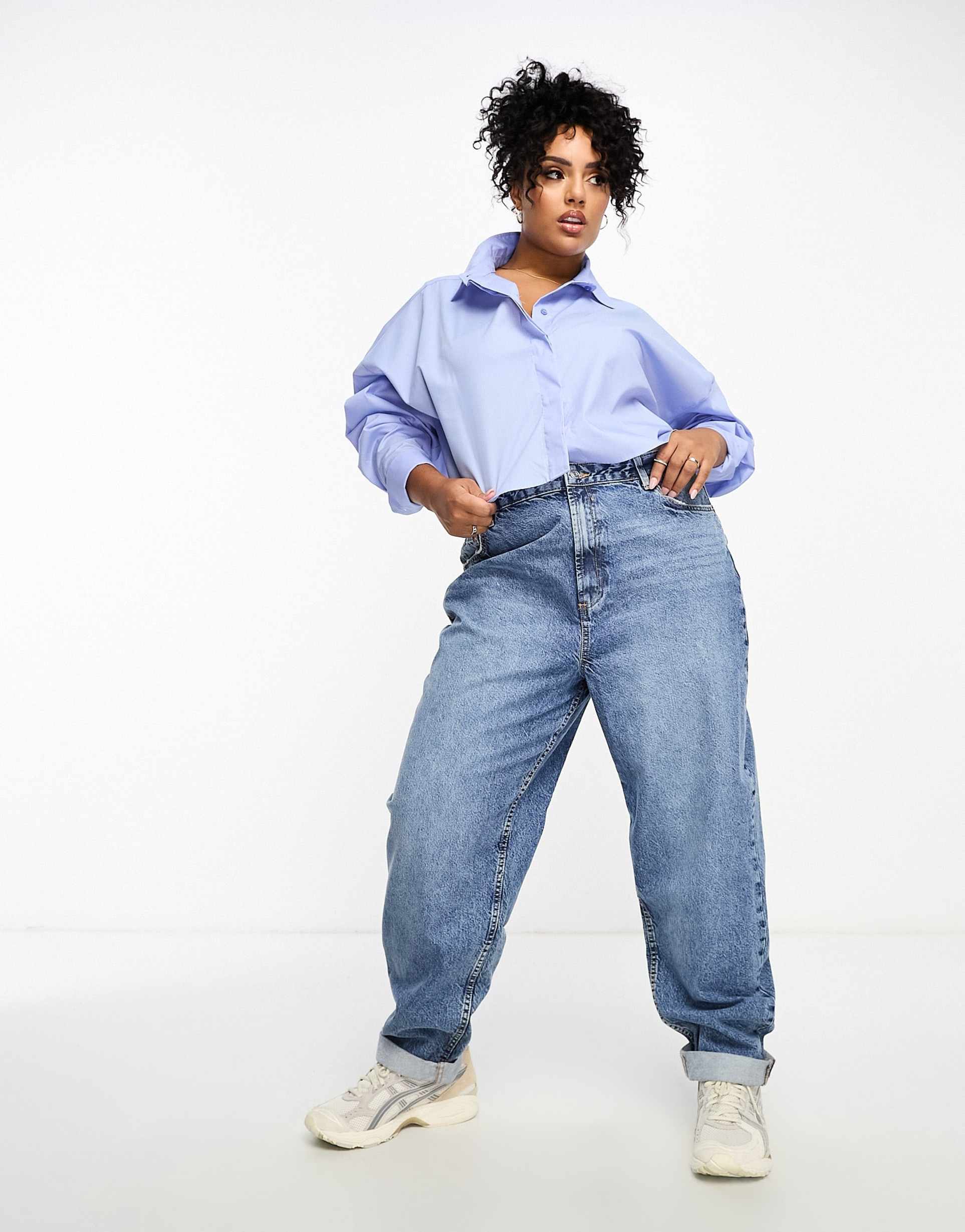 Embrace timeless comfort with these ASOS DESIGN Curve high-rise relaxed mom jeans in a classic mid-blue denim wash. Crafted from 100% cotton non-stretch denim, these jeans offer a relaxed fit that flatters every curve while providing breathable, durable wear. Featuring a flattering high waist with belt loops and five functional pockets, they combine style and utility seamlessly. The rolled hem adds a subtle laid-back vibe, perfect for casual streetwear or everyday outings. Elevate your wardrobe with these versatile, vintage-inspired jeans designed for effortless style and all-day comfort.
