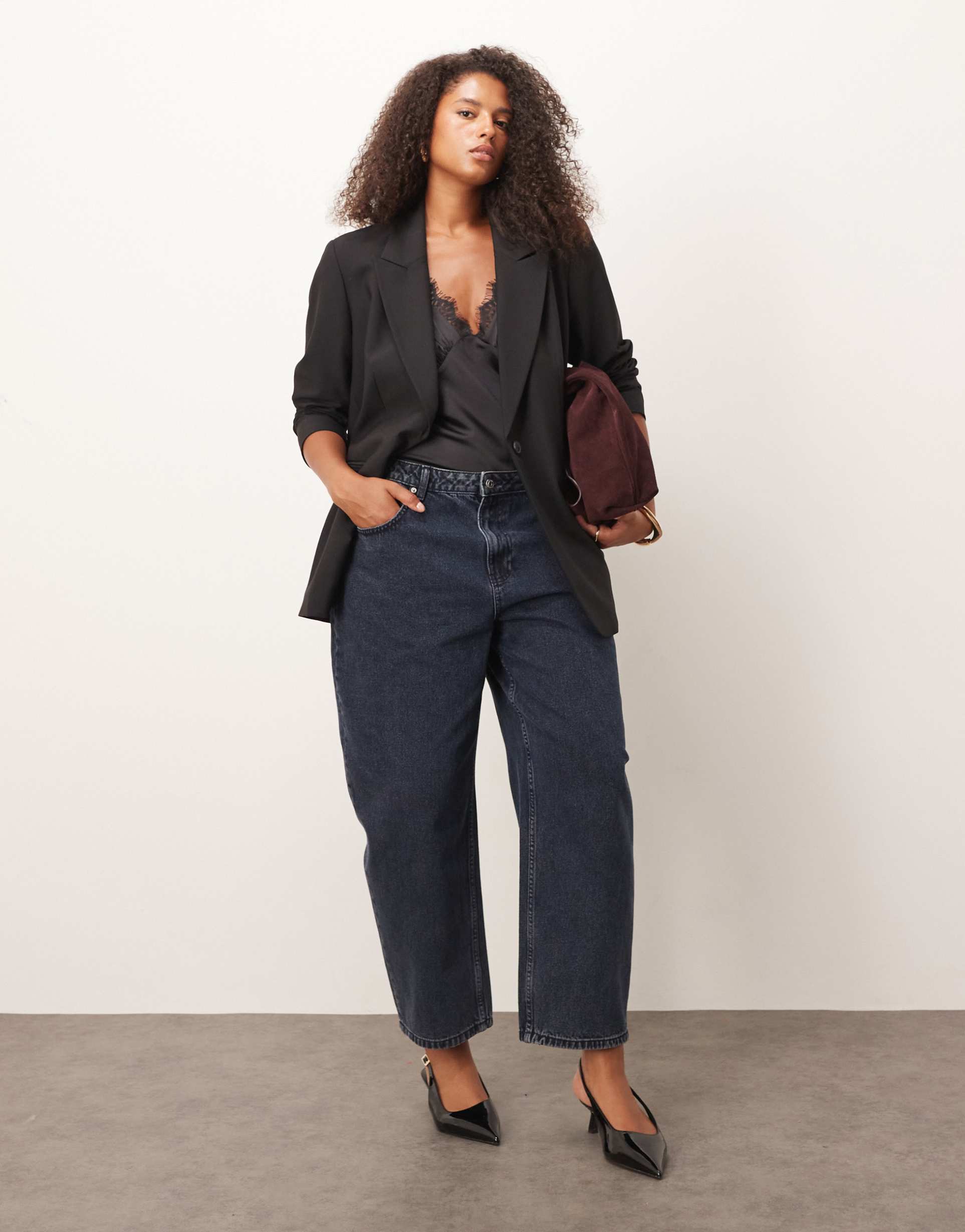 ASOS DESIGN CURVE SLIM BARREL JEANS IN BLUE BLACK