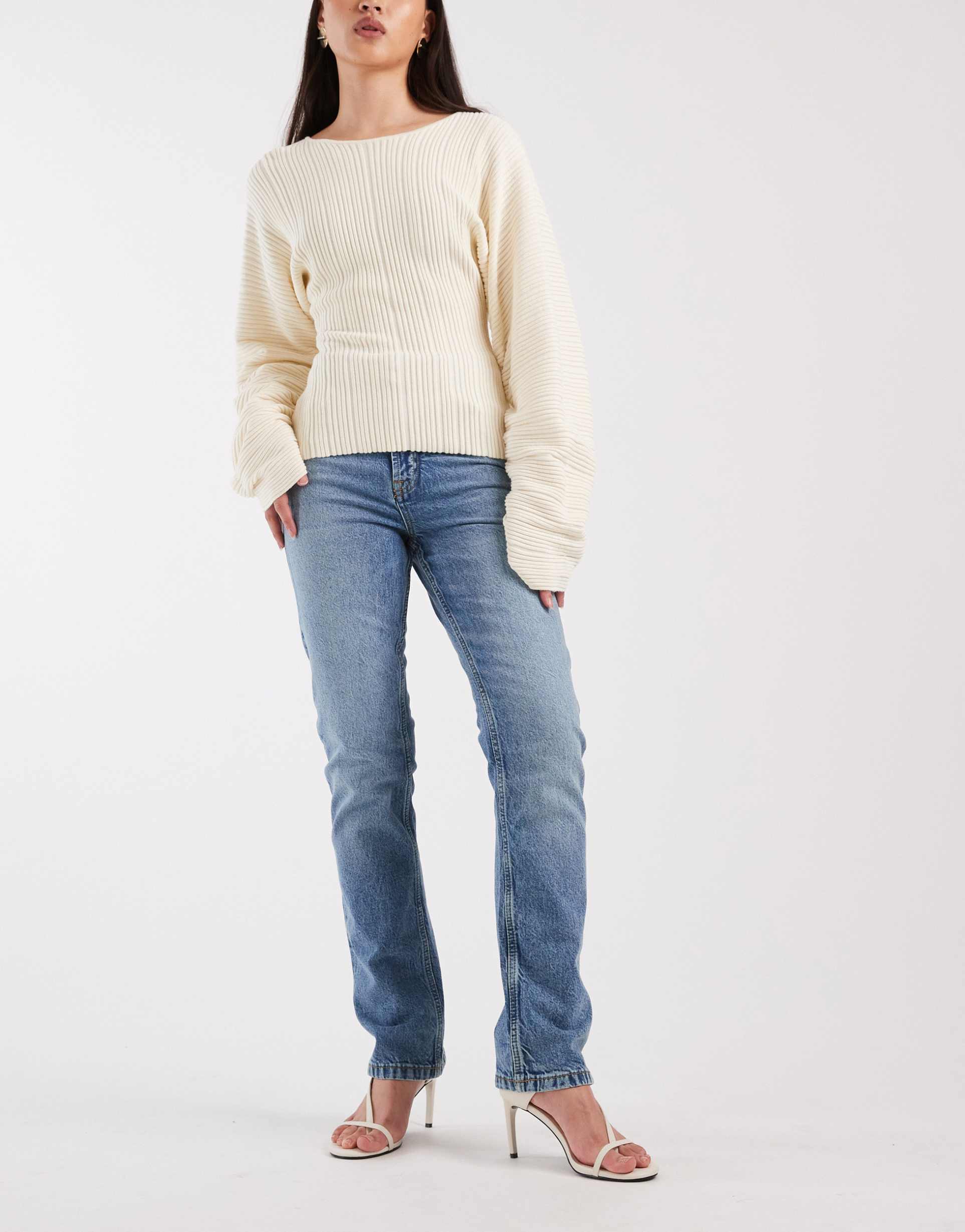 ASOS DESIGN HIGH RISE SLIM STRAIGHT JEANS IN MID BLUE
