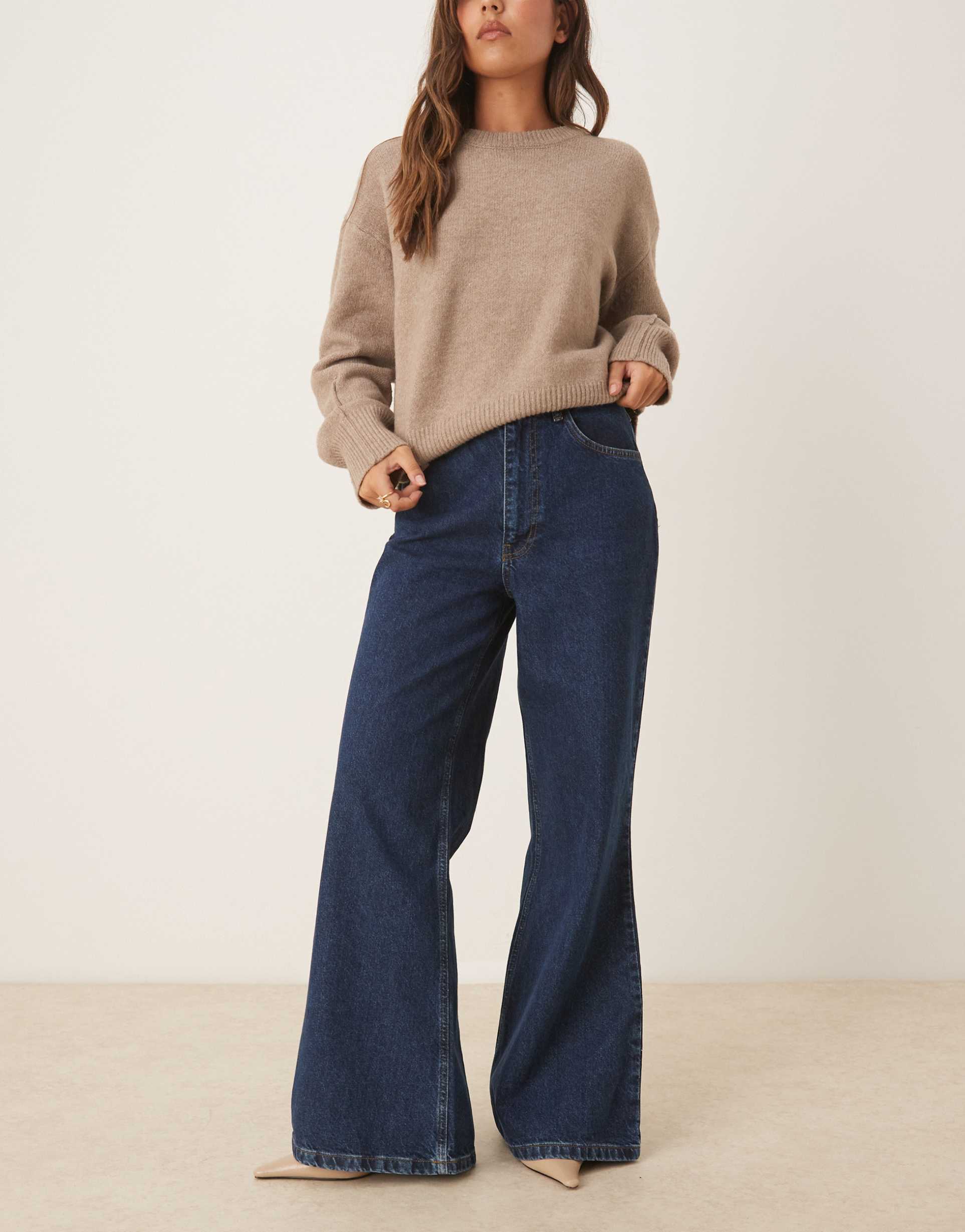 ASOS DESIGN HIGH RISE WIDE LEG FLARED JEANS IN INDIGO