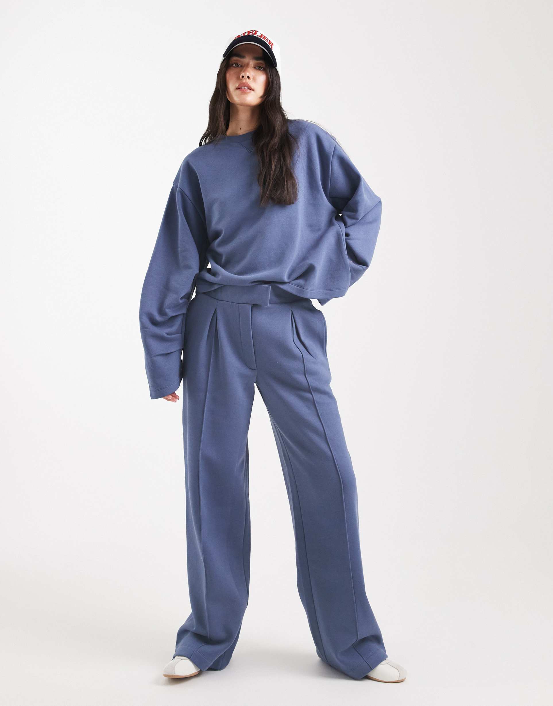 ASOS DESIGN OVERSIZED TAILORED BRUSHBACK SWEATPANTS WITH SEAM DETAIL IN DENIM BLUE