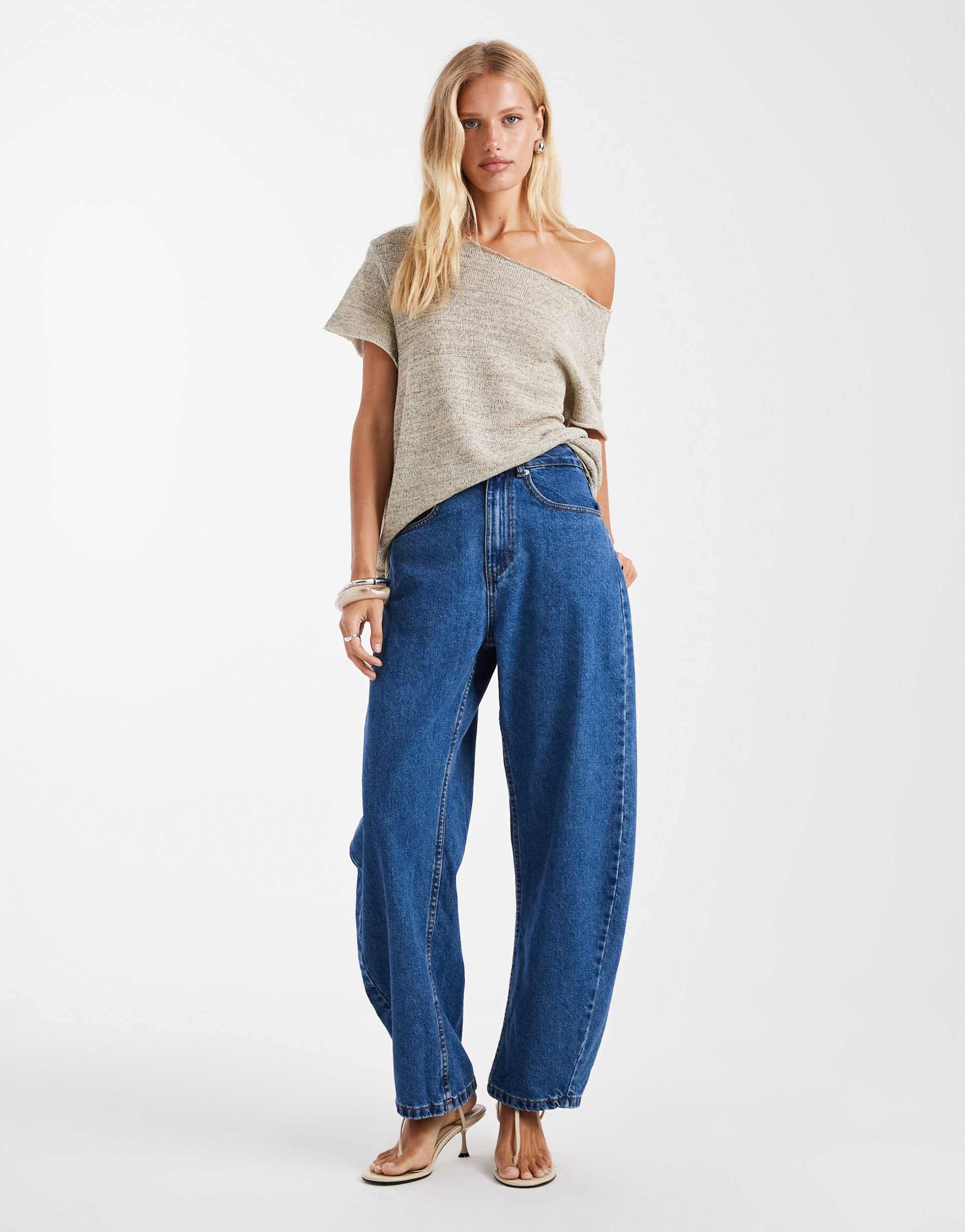 ASOS DESIGN SLIM BARREL JEANS IN MID BLUE