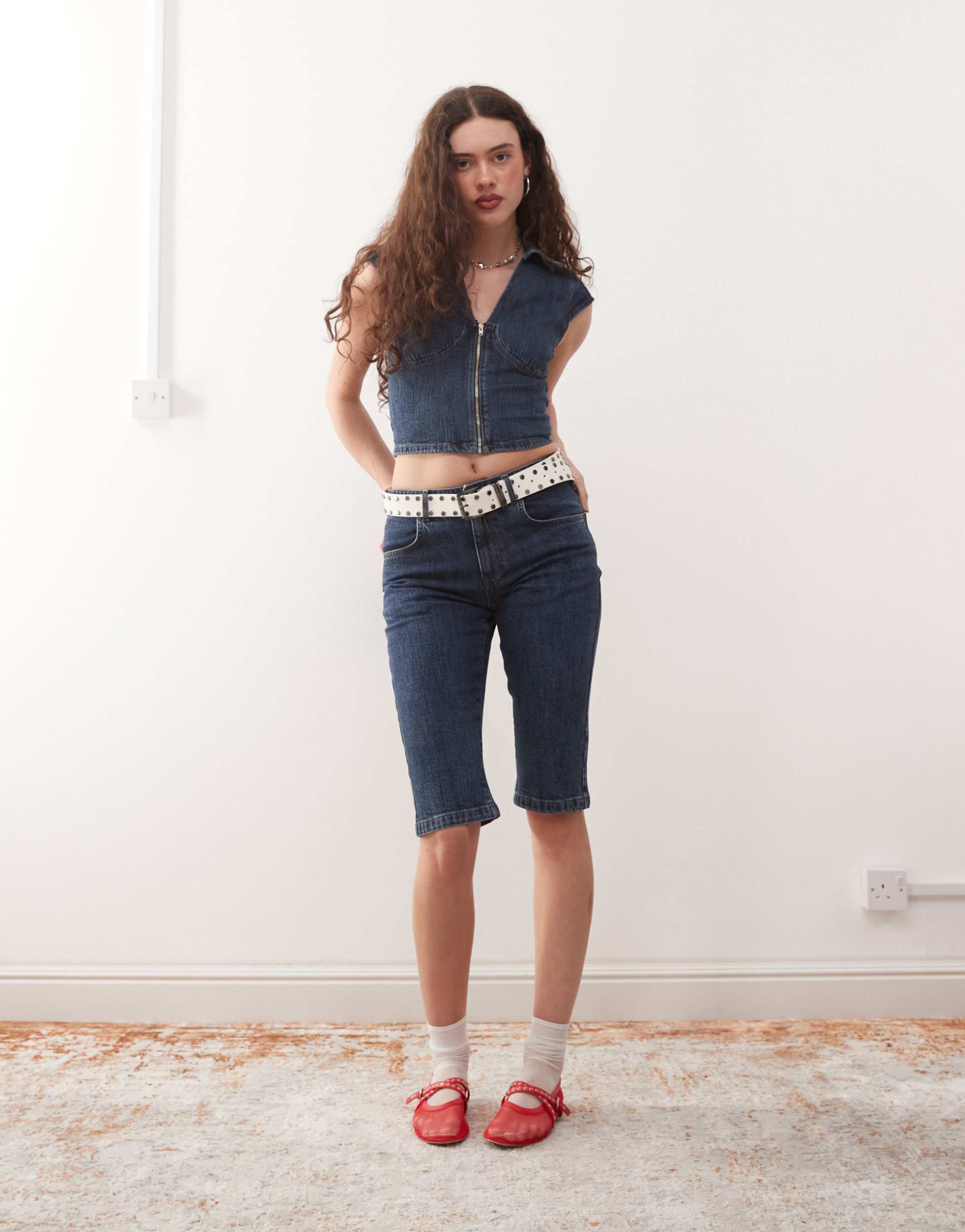 COLLUSION X000 LOW RISE CAPRI JEANS IN MID BLUE - PART OF A SET